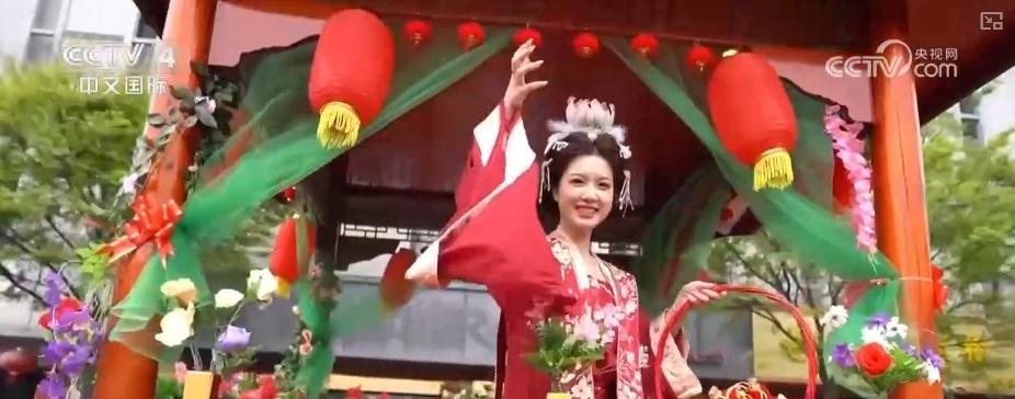 在江南水乡浙江德清新市古镇,蚕花庙会热闹上演。花轿大巡游作为庙会的重头戏,在新市古镇主要商业街进行,蚕花姑娘们撒下寄托着美好祝福的蚕花和糖果。