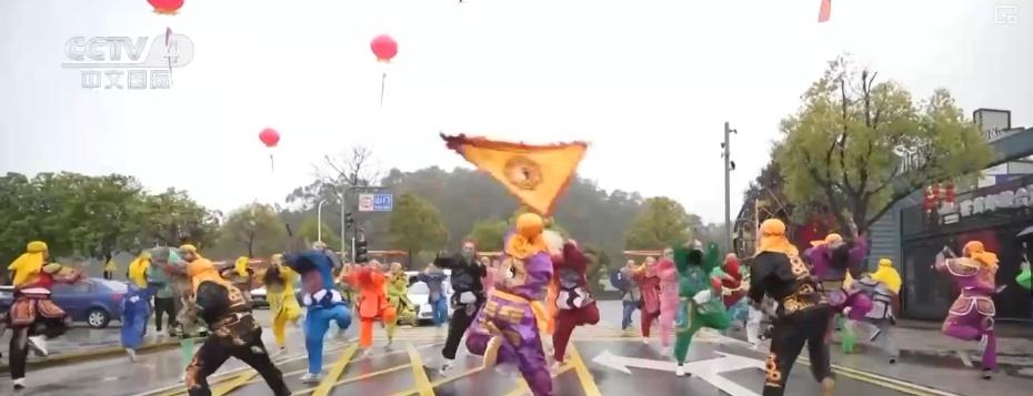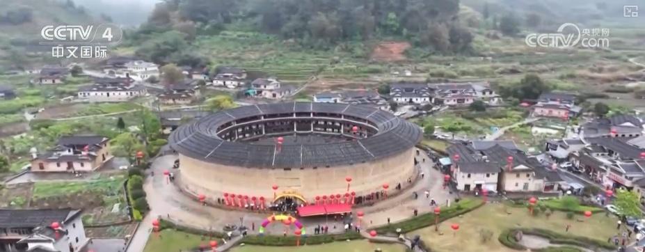 在福建漳州华安县,有着两百多年历史的华安大地土楼,迎来非遗表演方阵绕村巡游、一路展演。当兼具武术力量与舞蹈美感的英歌舞巡游开始时,现场游客也被热烈的气氛感染。